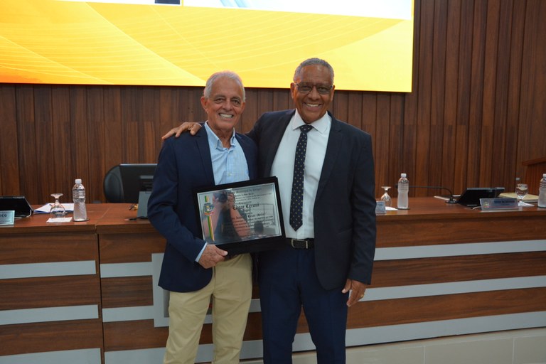 O homenageado recebeu o prêmio das mãos do vereador Leandro Moreira (MOBILIZA), um dos autores do projeto. Depois disso, foram realizados registros fotográficos.